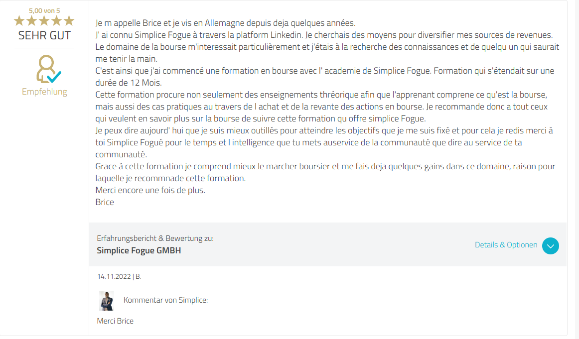 Rodrigue a décidé de se former en finance, écoute son impression.